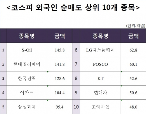 [코스피 외국인 순매도 상위 10개 종목]