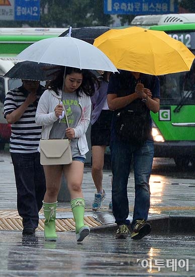 전국에 장맛비가 내리는 18일 오전 서울 광화문네거리에서 시민들이 우산을 쓰고 출근 발걸음을 재촉하고 있다. 방인권 기자 bink7119@