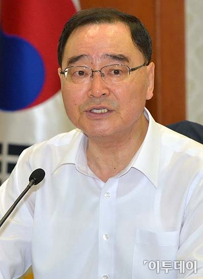 정홍원 국무총리가 21일 오전 서울 세종로 정부서울청사에서 열린 ‘국가정책조정회의’에서 모두발을 하고 있다. 방인권 기자 bink7119@