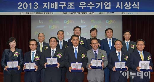 지배구조 우수기업 대상에는 두산중공업, 최우수기업에는 S-Oil, 다음커뮤니케이션, 우수기업에는 삼성전기, 신한금융지주, kt, 안랩이 수상했다.