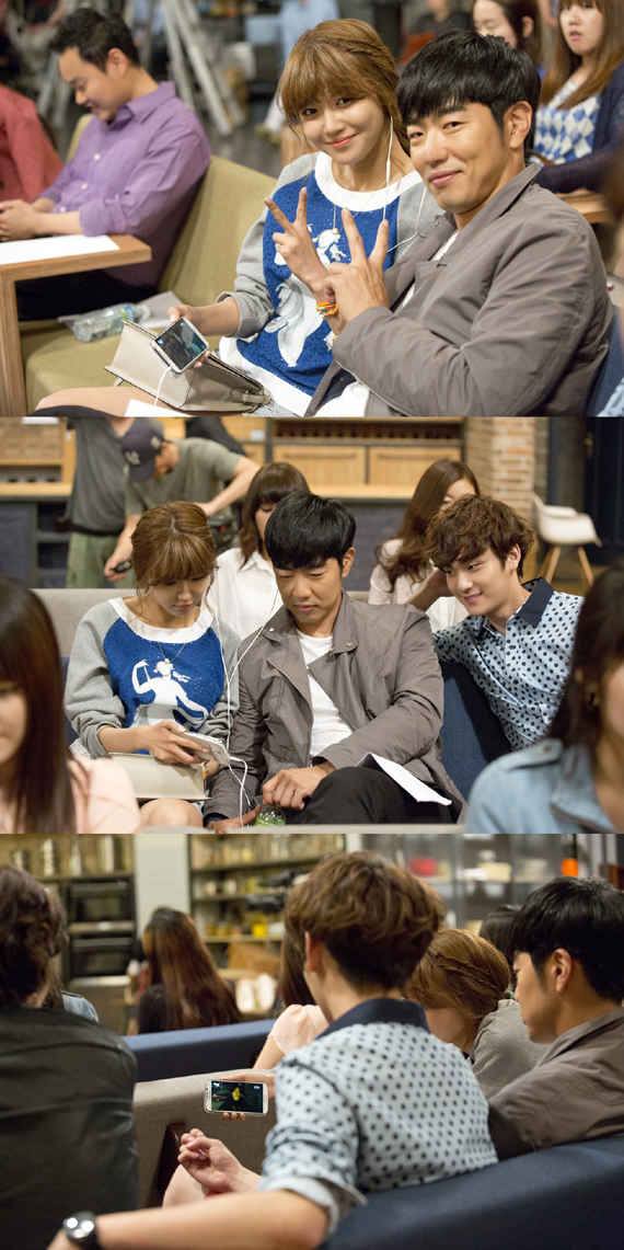 22일 tvN ‘연애조작단; 시라노’의 제작사 오보이프로젝트는 이종혁, 수영, 조윤우가 촬영을 기다리고 있는 중에 핸드폰으로 본방송을 시청하는 모습을 담은 사진을 게재했다.