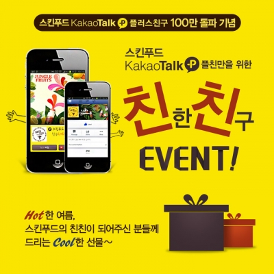 스킨푸드가 24일부터 30일까지 카카오톡 플러스 친구를 대상으로 ‘친친 이벤트’를 진행한다.