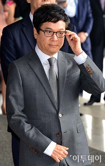 비자금 조성 및 탈세의혹을 받고 있는 이재현 CJ그룹 회장이 25일 오전 서울 서초동 중앙지방검찰청에 출두, 포토라인에 서며 안경을 만지고 있다. 이 회장은 CJ그룹의 주식을 차명으로 거래해 양도세 및 소득세 510억원을 내지 않은 혐의를 받고 있다. 방인권 기자 bink7119@