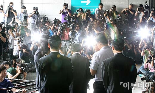 비자금 조성 및 탈세의혹을 받고 있는 이재현 CJ그룹 회장이 25일 오전 서울 서초동 중앙지방검찰청에 출석, 고개를 숙여 사과하고 있다. 이 회장은 CJ그룹의 주식을 차명으로 거래해 양도세 및 소득세 510억원을 내지 않은 혐의를 받고 있다. 방인권 기자 bink7119@