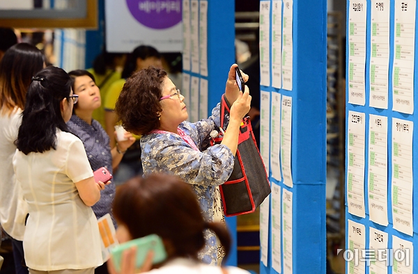 2013 서울여성일자리박람회가 25일 오후 광진구 여성능력개발원에서 열렸다. 박람회장을 찾은 여성 구직자들이 채용 정보 게시판을 살펴보고 있다. 노진환 기자 myfixer@