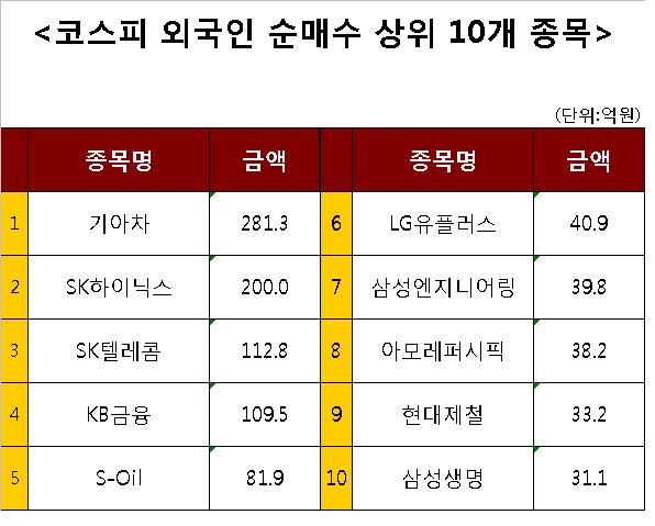 [코스피 외국인 순매수 상위 10개 종목]