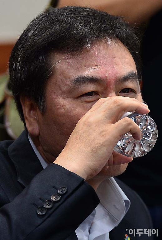 공적자금관리위원회 제78차 회의가 26일 오전 서울 태평로 금융위원회 대회의실에서 열렸다. 이날 회의에서 신제윤 금융위원장이 물을 마시고 있다. 양지웅 기자 yangdoo@