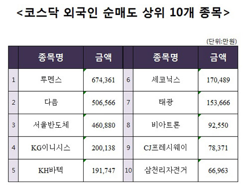 [코스닥 외국인 순매도 상위 10개 종목]