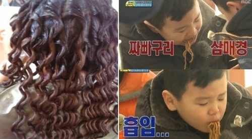 사진속에는 펌을 갓 마친 여성의 뒷모습이 담겨있다. 구불구불 검은 머리카락 모습이 마치 짜파게티 면발을 연상케 한다.