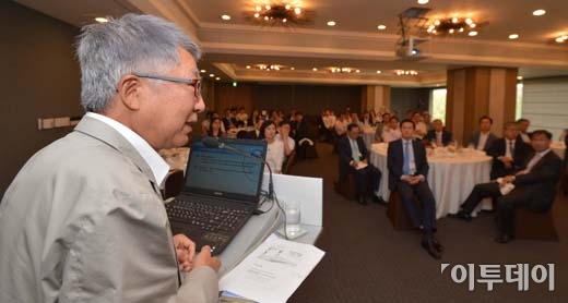 배순훈 S&T 중공업 회장이 27일 오전 서울 중구 플라자호텔에서 한국경제연구원 주최로 열린 ‘희망 코리아: G5를 향한 창조경제의 길’에서 창조경제에서 기업의 역할이란 주제로 강연하고 있다. 방인권 기자 bink7119@