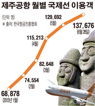 이는 중국인 관광객 증가세에 맞춰 저비용항공사들이 적극적으로 중국노선을 늘려나간 결과다. 올 들어 제주공항에는 중국을 잇는 국제선 직항 항공편이 늘어나 지난달까지 23개 도시 27개 노선을 운항 중에 있다.