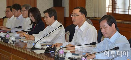 정홍원 국무총리가 28일 오전 서울 세종로 정부서울청사에서 열린 ‘국가정책조정회의’에서 모두발언을 하고 있다. 방인권 기자 bink7119@