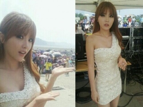 홍진영은 29일 자신의 트위터에 "해수욕장에서 노래만 부르고 그냥 간다는 게 너무 서운해요. 날씨도 짱! 물놀이 하고 싶다"라는 글과 함께 두 장의 사진을 올렸다.