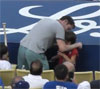 관중석으로 날아간 류현진의 야구방망이에 어린이 팬이 맞을 뻔 했다. 30일(한국시각) LA다저스와 필라델피아 필리스의 경기 도중 류현진 타석에서 방망이가 3루 관중석으로 날아가 한 어린이 근처로 떨어졌다. 유튜브에 올려진 이 영상에는 방망이가 날아온 이후 울음을 터뜨리는 아이와 이를 달래는 보호자의 모습, 류현진의 걱정스런 얼굴등이 잡혔다.