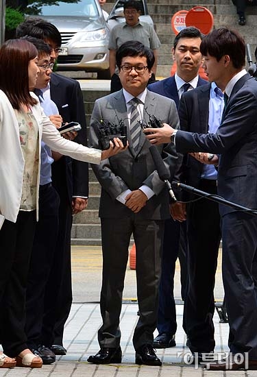 수천억원대의 비자금 조성과 횡령, 배임, 탈세 혐의를 받고 있는 이재현 CJ그룹 회장이 영장실질심사를 받기 위해 1일 오전 서울 서초동 중앙지방법원으로 들어서며 취재진의 질문을 받고 있다. 방인권 기자 bink7119@