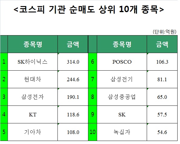 [코스피 기관 순매도 상위 10개 종목]