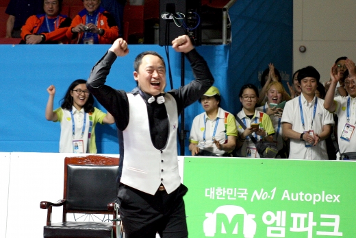 황득희는 1일 오후 송도 컨벤시아에서 열린 남자당구 원쿠션 결승에서 응고딘나이(32ㆍ베트남)를 100-97로 따돌리고 극적으로 금메달을 차지했다.