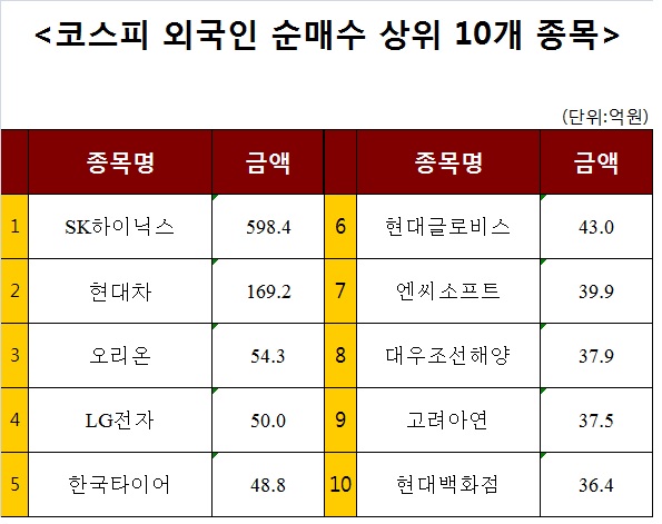 [코스피 외국인 순매수 상위 10개 종목]