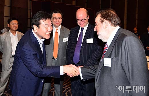 [포토]외국계 금융회사 관계자들과 인사 나누는 신제윤 위원장