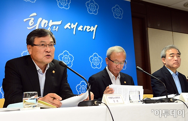 최문기 미래창조과학부 장관이 4일 오전 여의도 한국수출입은행에서 ‘정보보호산업 발전 종합대책’을 발표하고 있다. 노진환 기자 myfixer@