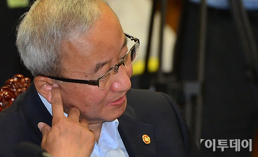 현오석 경제부총리 겸 기획재정부 장관이 5일 세종로 정부서울청사에서 열린 국가정책조정회의에 참석해 생각에 잠겨 있다. 양지웅 기자 yangdoo@