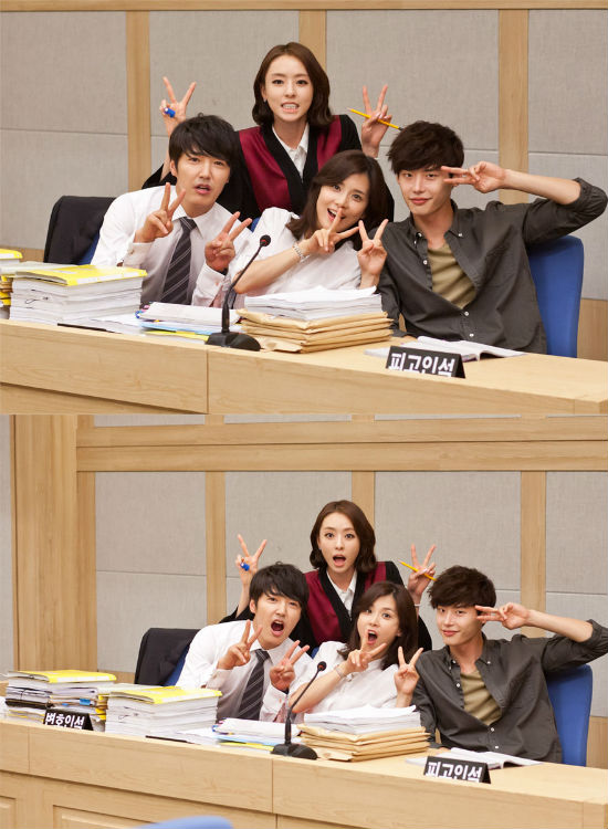 SBS 드라마 스페셜 ‘너의 목소리가 들려’ 주연진(이보영 이종석 윤상현 이다희)이 긴장된 참여재판 녹화를 끝내고 엉뚱한 표정과 함께 브이(V)를 해보였다.