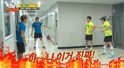 박지성과 유재석은 경쟁팀 구자철과 김종국과 맞닥뜨렸다. 구자철은 박지성을 겁을 주기 위해 공격하는 모션을 취했다. 이에 박지성이 움찔했다. 구자철은 “그런 모습 처음이야”라며 포복절도했다. 이에 박지성은 “아 나 이거 진짜”라고 해 주변의 폭소를 자아냈다.