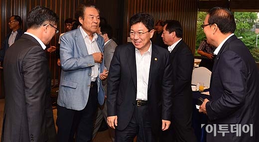 윤상직 산업통상자원부 장관이 8일 오전 서울 서초구 반포동 팔래스 호텔에서 열린 ‘한-중 FTA 관련 농수산업계 간담회’에 참석하고 있다. 방인권 기자 bink7119@
