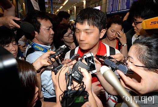 아시아나항공 사고 여객기 탑승객 중 한국 승객 11명이 8일 오후 인천국제공항을 통해 귀국하고 했다. 출국장으로 나온 탑승객이 취재진의 질문공세를 받고 있다. 방인권 기자 bink7119@