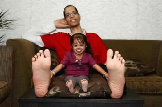 가장 작은 발을 가진 여성은 '세계에서 가장 작은 여성'으로 유명한 인도 출신 조티 암지다. 가장 큰 발을 가진 남성은 '세계에서 두번째로 큰 사람'인 모로코 출신 브라힘 타키울라이다. 그의 키는 현재 246cm를 기록 중이며 발 크기는 무려 38.1cm다.