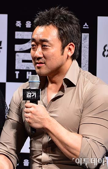배우 마동석이 9일 오전 서울 강남구 신사동 압구정 CGV에서 열린 ‘감기’ 제작발표회에서 취재진의 질문에 답하고 있다. 방인권 기자 bink7119@