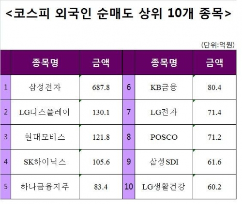 [코스피 외국인 순매도 상위 10개 종목]