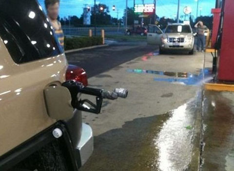 주유기 해체한 남자의 사진을 보면 황당하기 그지없다. 주유소에서 기름을 넣던 남자는 주유기를 해체해 버렸다. 해체된 주유기는 자동차 주유구에 꽂혀 있고, 주유소 바닥은 기름으로 흥건하다.