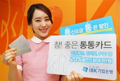 기업은행은 지난 5월 휴대전화 요금은 물론 인터넷과 IPTV, 인터넷전화 등 다양한 통신요금을 최대 3만원까지 할인해주는 참! 좋은 통통카드를 판매하기 시작했다.