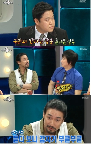 10일 방송된 MBC ‘라디오스타’에 출연한 신성우는 MC김구라의 인터넷 방송을 놓치지 않고 대부분 시청했다고 말했다.