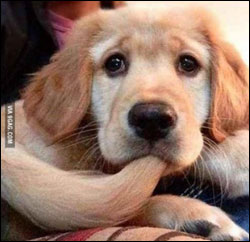 특히 이 강아지는 자신의 꼬리를 입에 물고 배가 고픈 듯 눈물을 글썽이고 있어 웃음을 자아낸다.
