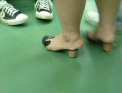 특히 이 중 자신의 발 크기와 전혀 맞지 않는 여성용 슬리퍼를 신고 있는 발이 눈길을 사로잡는다. 이 때문에 새끼발가락이 신발 밖으로 삐져나온 모습이 웃음을 자아낸다.