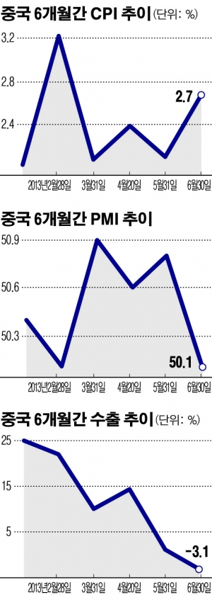 중국의 6월 제조업 구매관리자지수(PMI)는 50.1로 4개월 만에 최저치를 기록했다. 이는 전월의 50.8에서 0.7포인트 하락한 것이다.