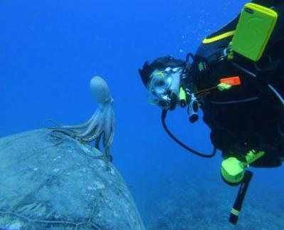 최근 한 온라인 커뮤니티 게시판에는 ‘패기 있는 문어’ 라는 제목으로 한 장의 사진이 게재됐다. 사진 속에 등장한 문어는 잠수부와 눈을 마주치고 있는 모습이 담겨 있다.