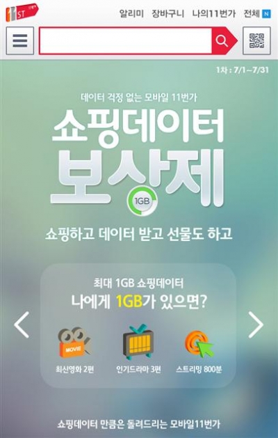 오픈마켓 11번가는 모바일 쇼핑 시 사용되는 데이터를 보상해주는 ‘쇼핑데이터 보상제’를 시행한다고 15일 밝혔다.