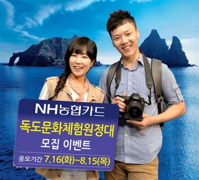 NH농협카드는‘사이버농협독도-환동해·독도아카데미’의 일환으로 8월 27일부터 30일까지 열리는 ‘독도문화체험’에 참가할 원정대를 다음 달 15일까지 모집한다.