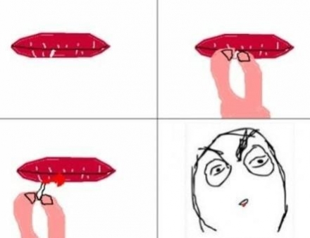 최근 한 온라인 커뮤니티에는 '여자들만 아는 아픔' 2탄이라는 제목의 게시물이 올라왔다. 게시물에는 빨간 립스틱을 바른 입술의 각질을 뜯어내다 피가 나는 상황이 4컷 만화로 그려져 있다. 마지막 그림에서 눈썹을 치켜뜨고 입술을 잔뜩 오므린 여성의 얼굴에서 고통과 체념이 묻어나 보는이의 공감을 자아낸다.