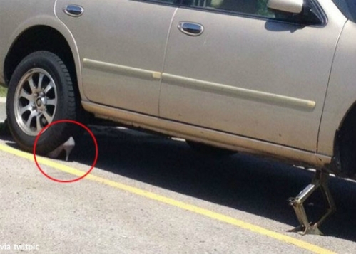 최근 온라인 커뮤니티 게시판에는 '가장 강력한 하이힐'이라는 제목의 사진 한 장이 올라왔다. 사진 속에는 어떤 도구를 이용해 자동차를 들어 올려 타이어를 갈아 끼우려는 장면이 담겨 있다. 자세히 보면 자동차의 뒷바퀴는 하이힐이 지탱하고 있다.