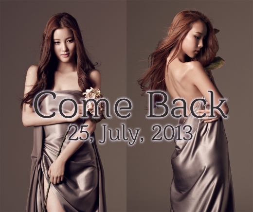 공개된 사진 속에는 ‘25, July, 2013 Come Back’이라고 적힌 문구와 함께 드레스를 입고 누군가를 기다리는 듯 청초한 매력을 과시하는 멤버 지수와 우수에 찬 눈빛의 멤버 미소의 모습이 담겼다. 특히 구리빛 피부에 군살 한 점 없는 미소의 뒤태는 보는 이들의 탄성을 자아낸다.