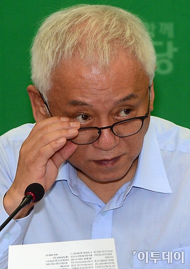 김한길 민주당 대표가 17일 오전 국회 당대표실에서 열린 최고위원회의에 참석해 회의 도중 안경을 벗고 있다. 노진환 기자 myfixer@