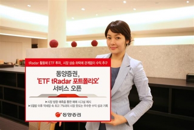 동양증권은 17일 주식투자의 대안으로 각광받고 있는 ETF(상장지수펀드)를 인공지능 종목추천 시스템인 ‘MY tRadar’를 활용해 투자하는 ‘ETF tRadar 포트폴리오’ 서비스를 오픈한다고 밝혔다.