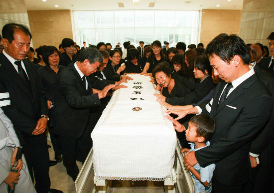 18일 서울 강남의 서울삼성병원 장례식장에서는 구옥희 한국여자프로골프협회(KLPGA) 전 회장의 영결식이 열렸다. 유족 및 동료ㆍ선후배 선수들은 화장 전 고인의 마지막 모습 앞에서 오열하고 있다.