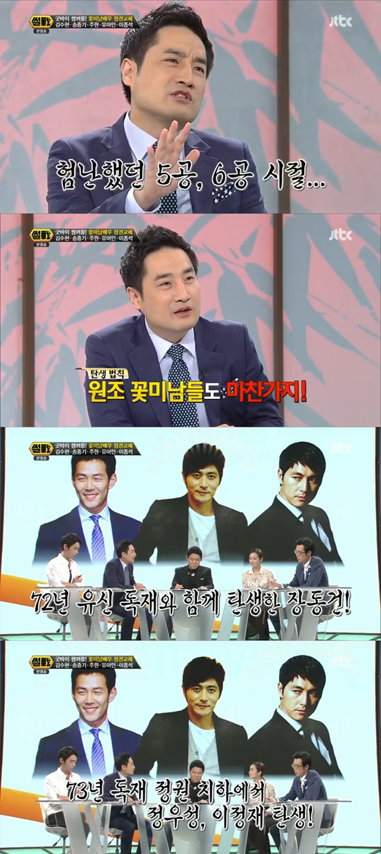 이어 그는 대표적인 미남 배우 장동건에 대해 “72년 유신 독재가 태어나던 해에 장동건이 태어났고, 73년 정우성, 이정재가 태어났다. 나라가 흉흉할수록 꽃미남이 탄생했다. 이른바 ‘독재정권 꽃미남 탄생설’이다”고 말해 웃음을 자아냈다.
