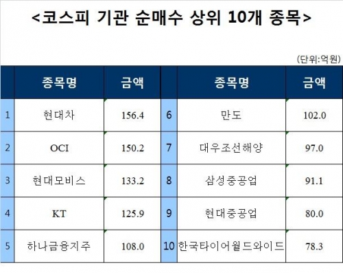 [코스피 기관 순매수 상위 10개 종목]