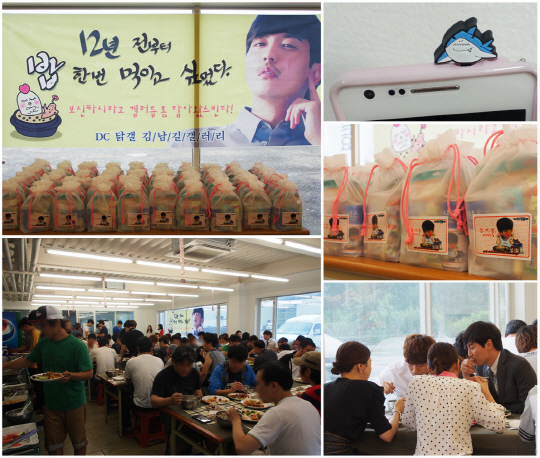 19일 김남길 갤러리에 공개된 사진에서 김남길 팬들은 120분의 삼계탕과 팥빙수를 준비해 스태프들에게 대접했다.